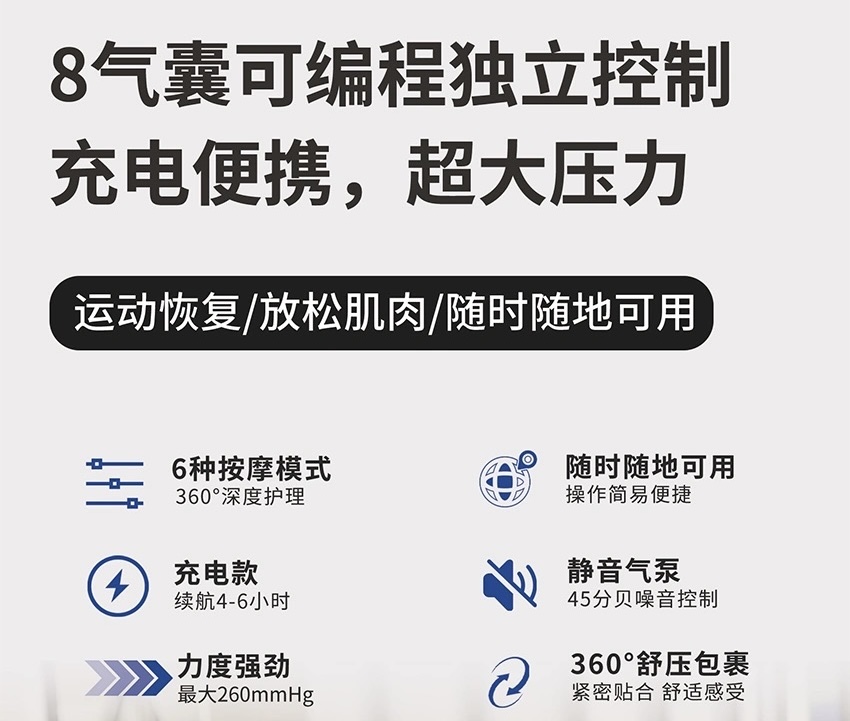 上新福利RQ币可抵200,最低价至3799!JoyRace压力按摩腿套,主机全面升级,机身更纤薄小巧,流量更大,更快达到压力峰值。【腿套组合】内含:主机、腿套、连接管、背包、电源、说明书 (L码适合155-185cm身高,M码适合155cm以下身高) (不支持退款退货)